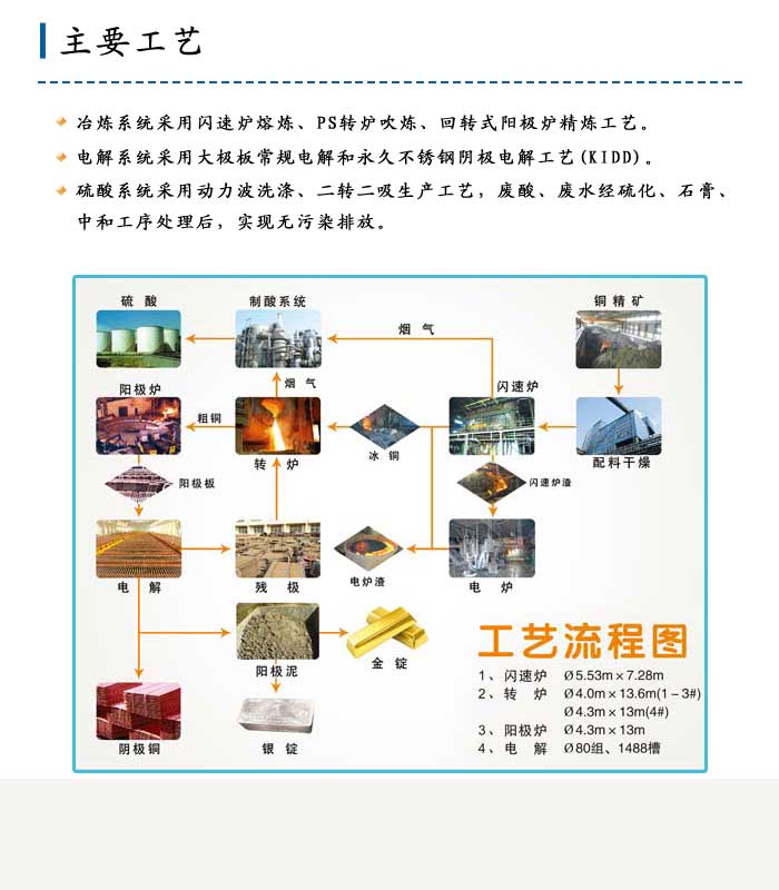主要工艺Q?/strong>冶炼pȝ采用闪速炉熔炼、PS转炉吹炼、回转式x炉精炼工艺。电(sh)解系l采用大?..   >>详细信息